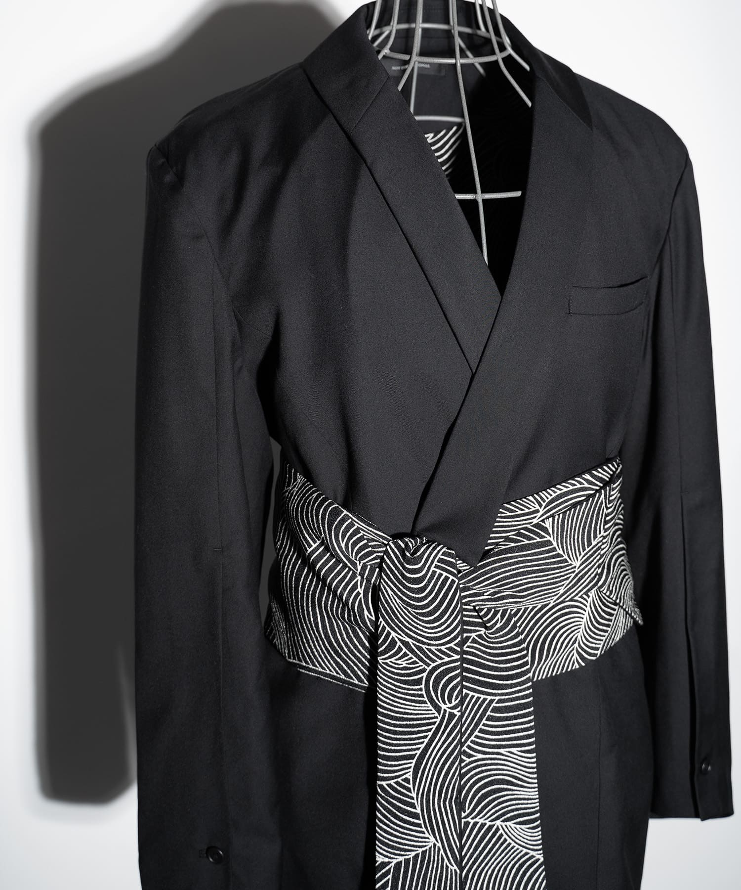NOTオリジナルのT/R(ポリエステル/レーヨン)生地を使用した ちりめん帯ジャケット。