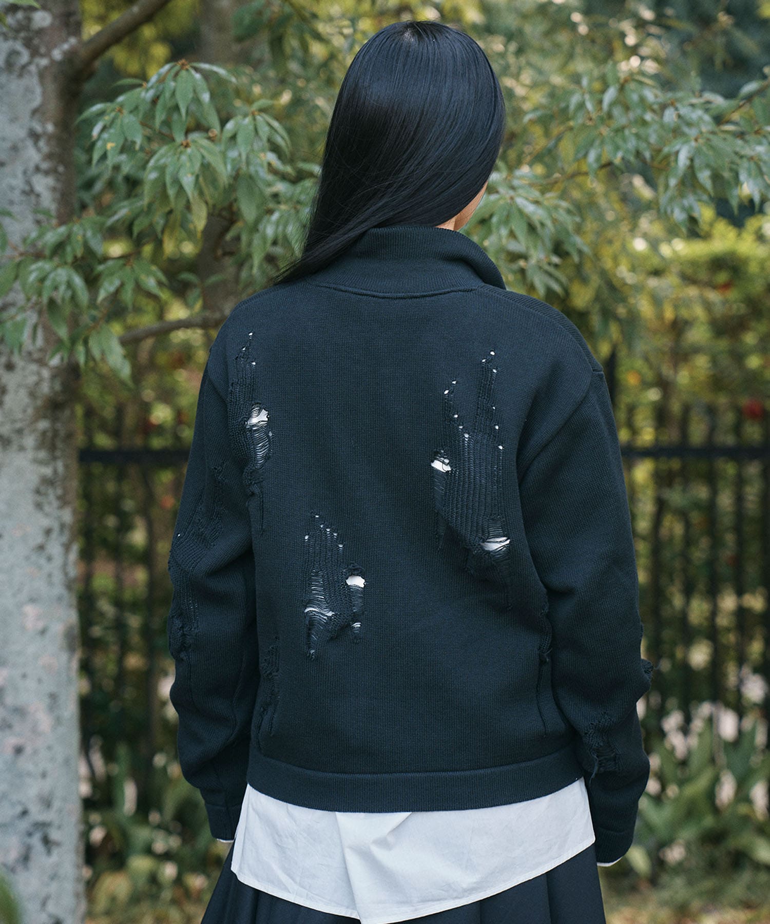 ニット特有のストレスフリーな着心地は、幅広いシーズンでの着用を可能にし、日常の快適性とモードなテクスチャーを両立させています。