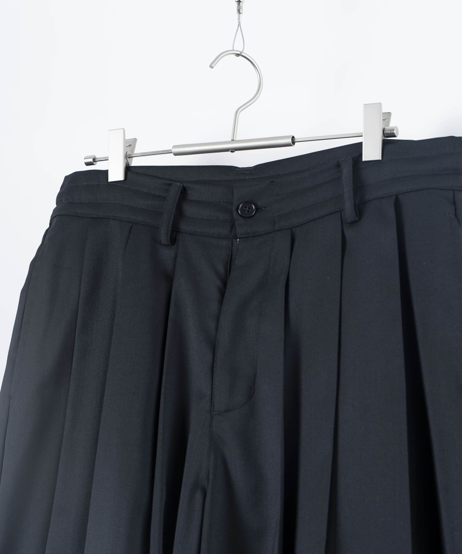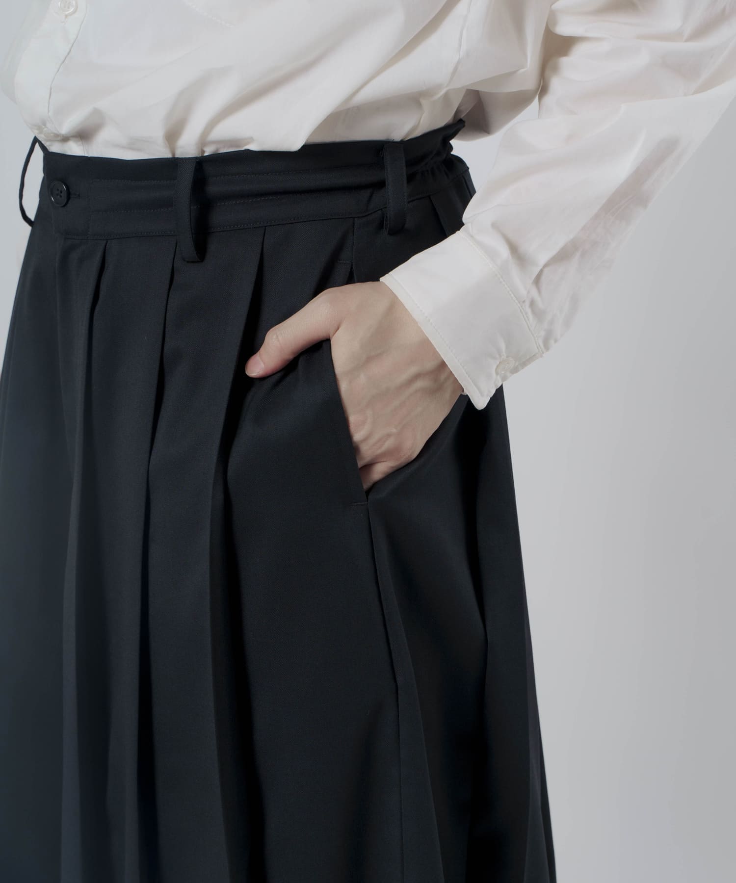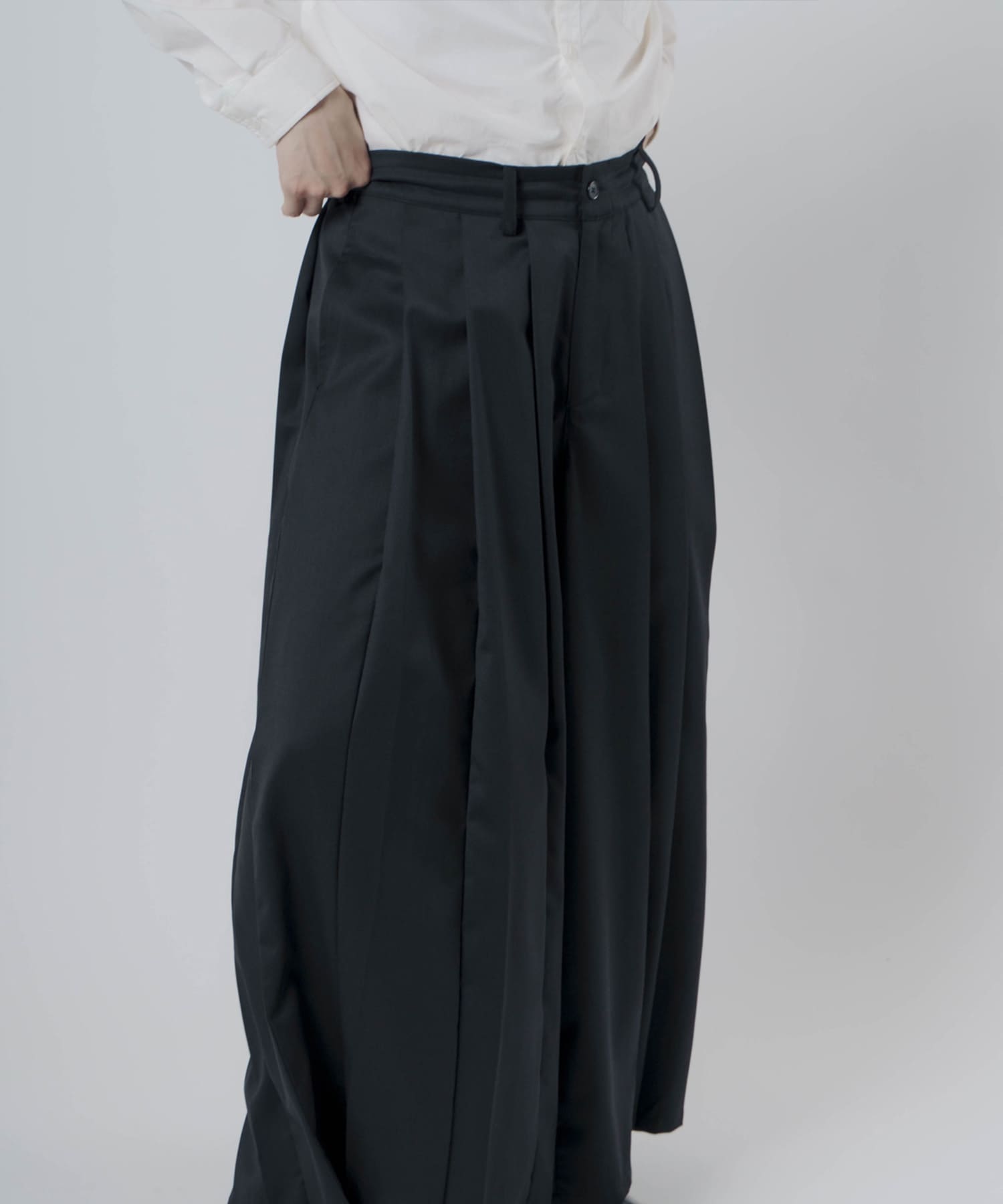ポリエステル×ウールの上質な生地を使用したタックプリーツハカマパンツ。