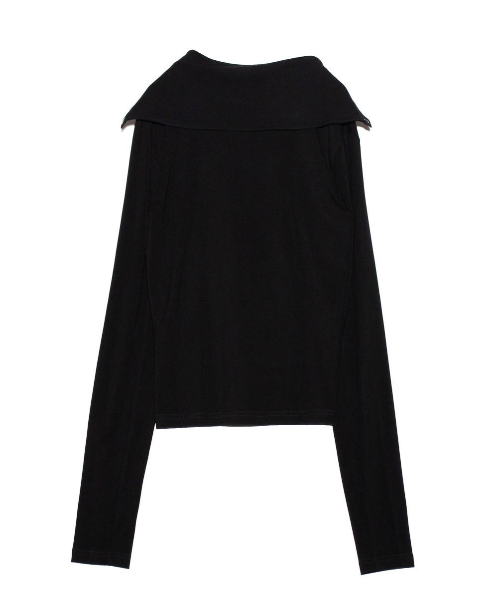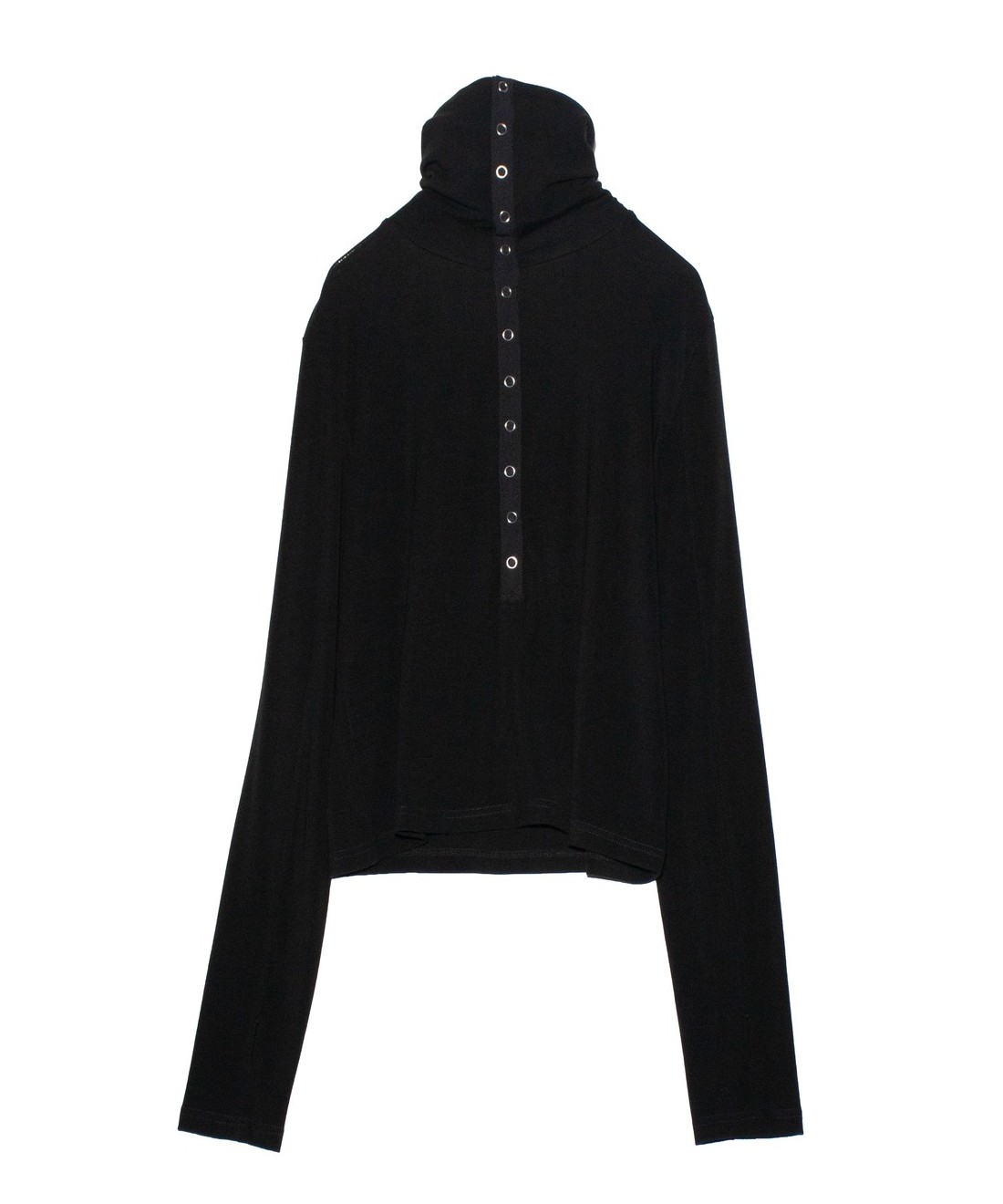 ボタンの開閉でタートルネック風にもシャツカラー風にもなる、ユニークな2WAYデザインのリングスナップカットソー。