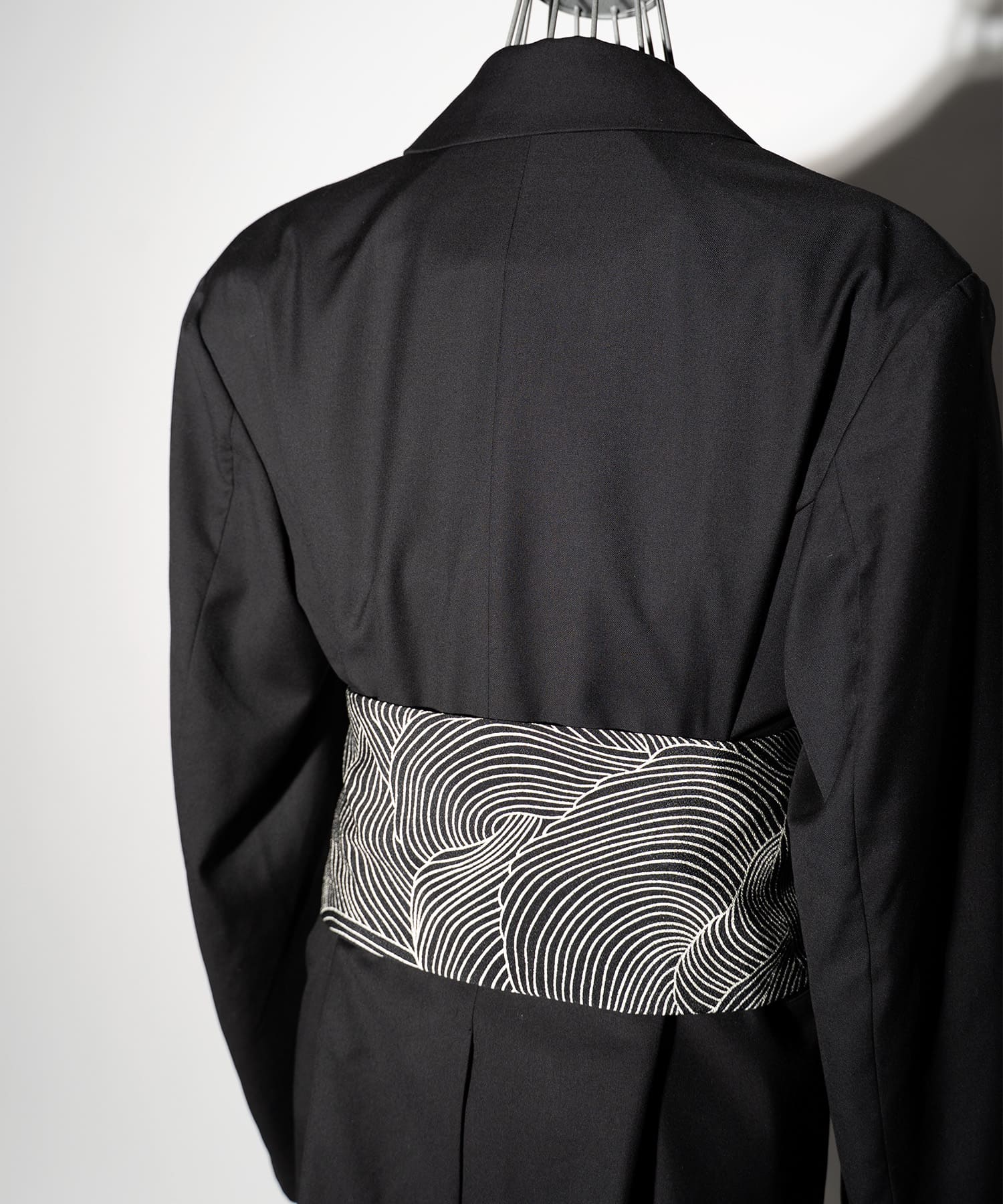 NOTオリジナルのT/R(ポリエステル/レーヨン)生地を使用した ちりめん帯ジャケット。
