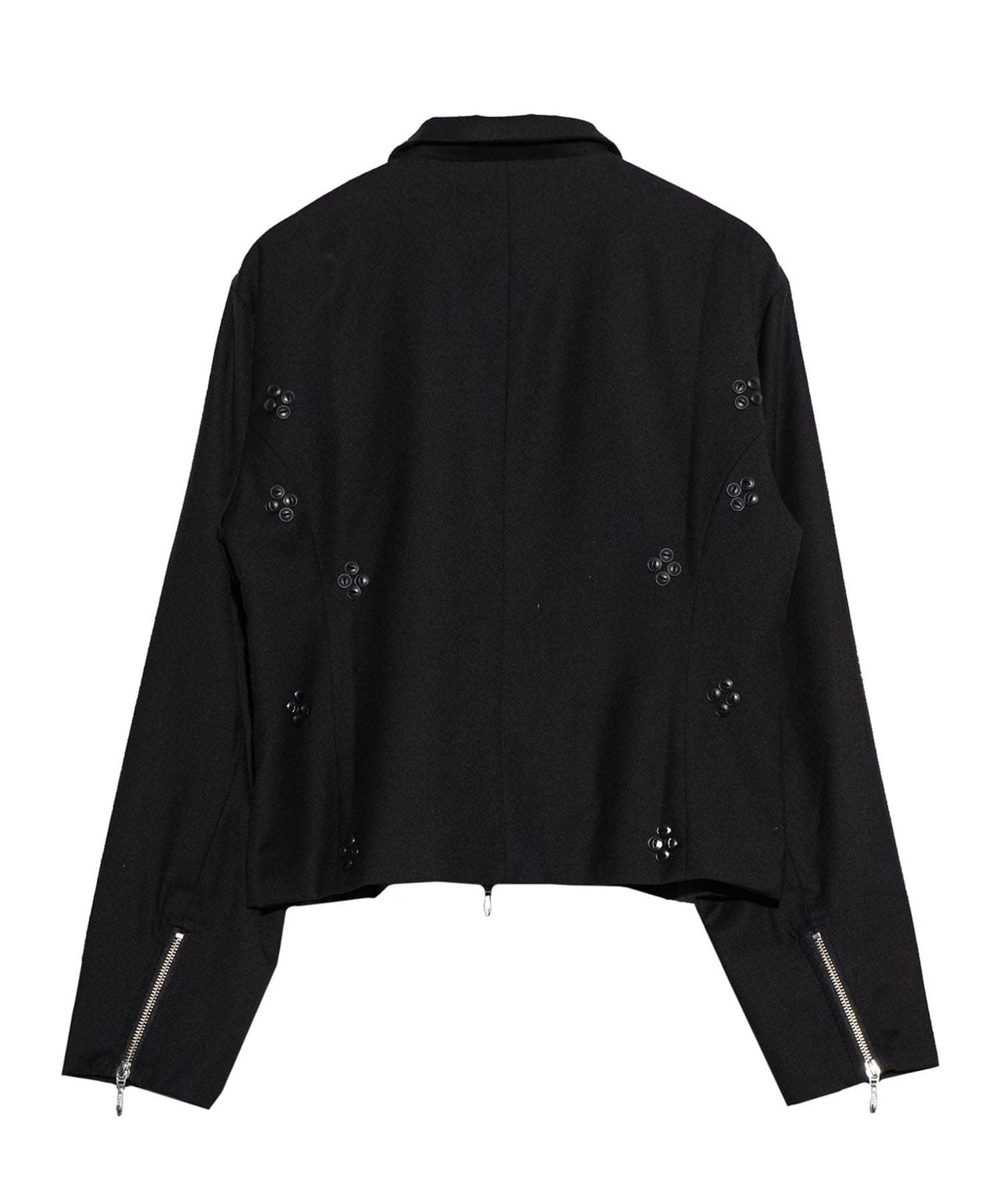 身頃全体に規則的にちりばめられた小さな釦たちはヤマネコの足跡を表現しています。