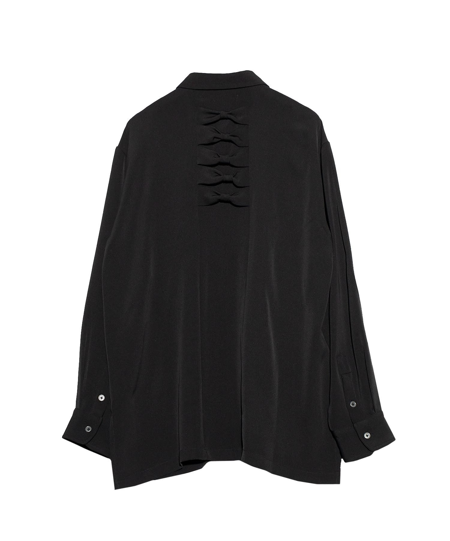 NOTオリジナルのサテン生地を使用したリボンデザインシャツジャケット。