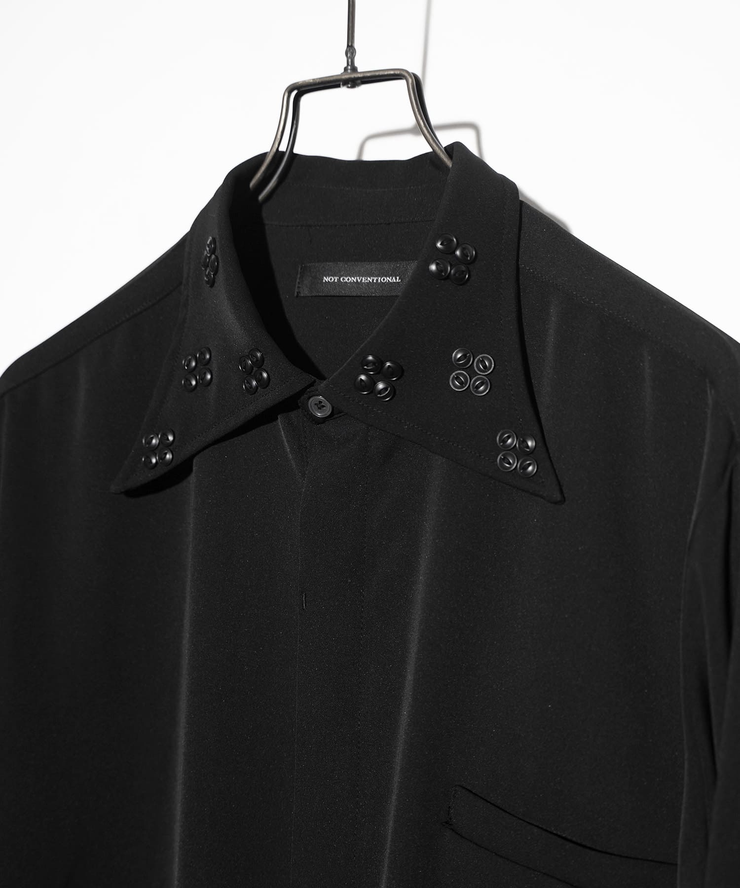 NOTオリジナルのサテン生地を使用したプリオナイルルス ボタンシャツ。