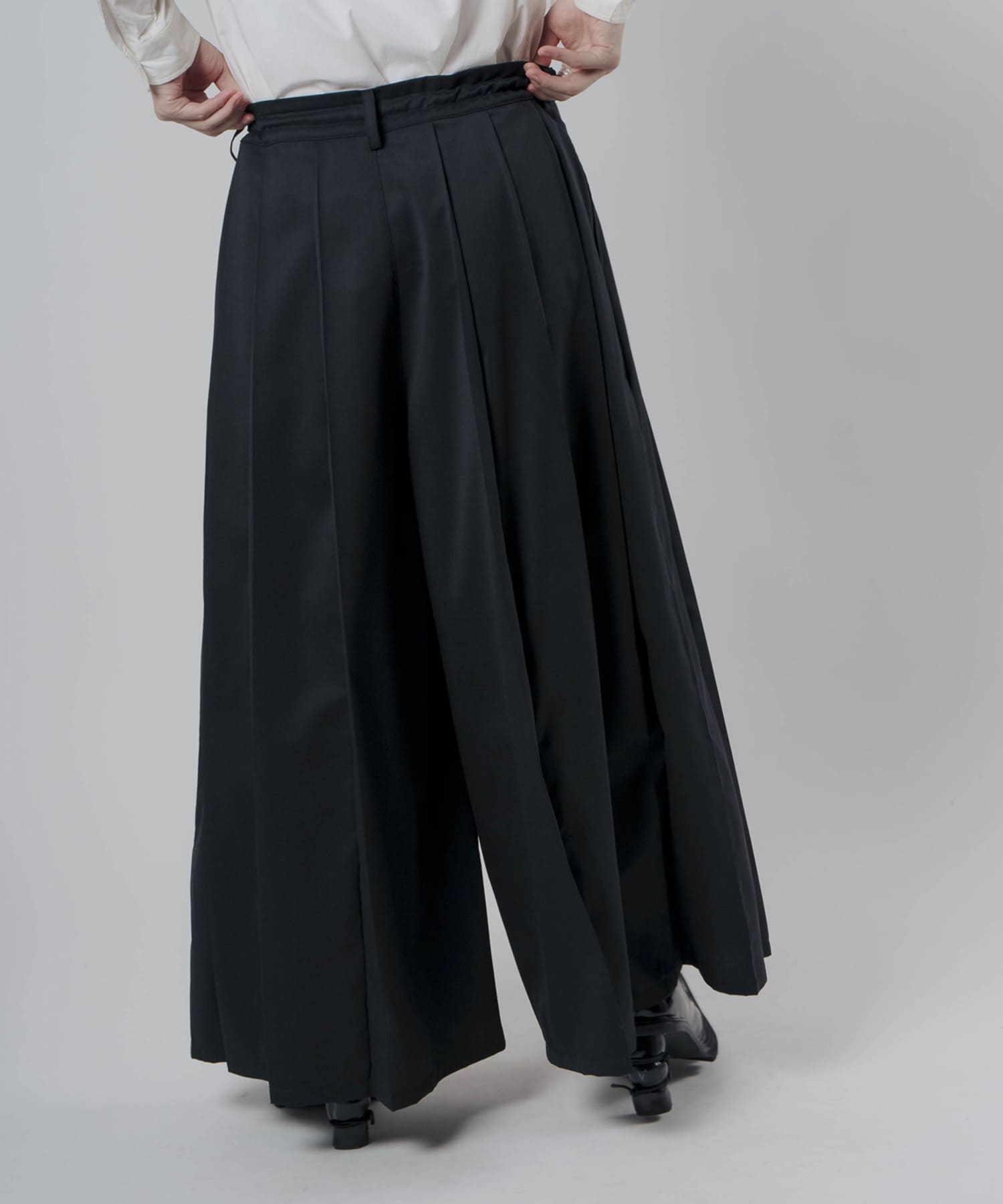 ポリエステル×ウールの上質な生地を使用したタックプリーツハカマパンツ。