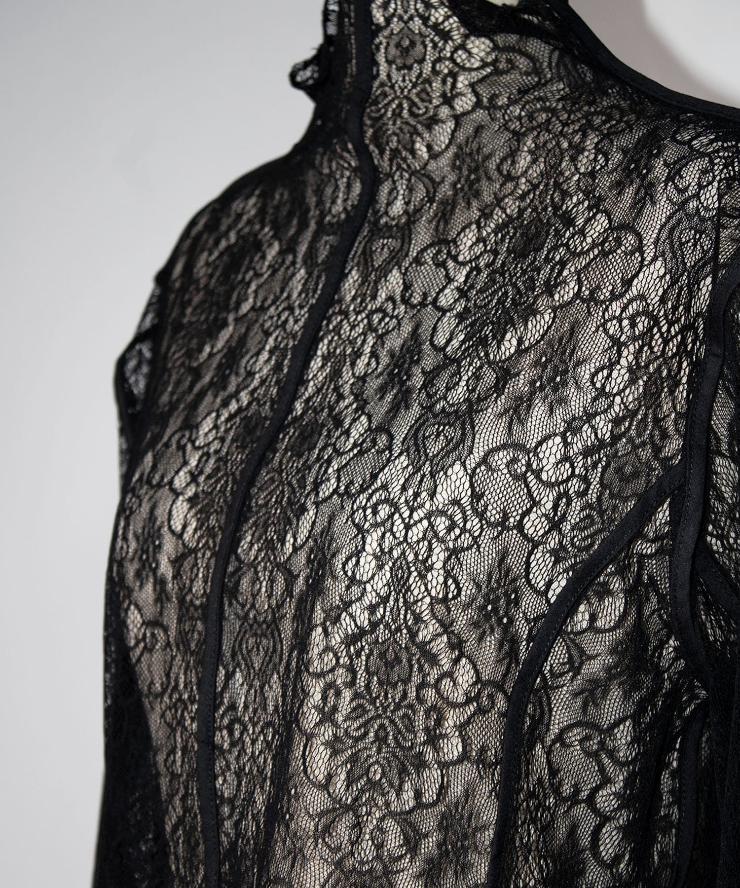 繊細な植物モチーフのレースを贅沢に使用したハイネックレーストップ。